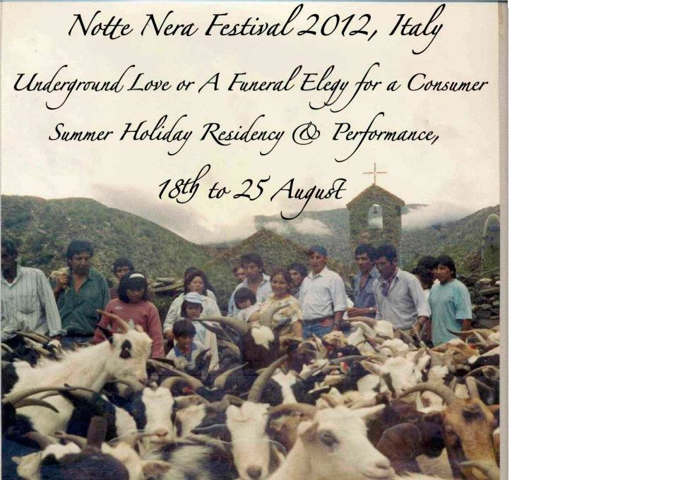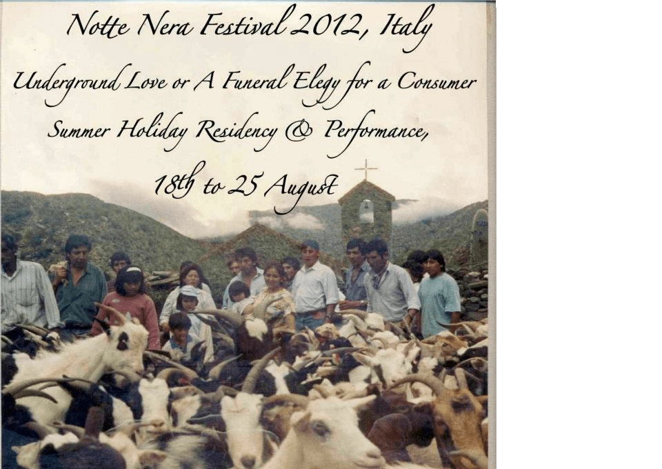 This 7 days workshop will end in a spectacle called ” Underground love or a funeral elegy for a consumer”, performed at the Notte Nera Festival(www.nottenera.it). Particpation in the performance is not compulsory and each participant can collaborate in the creative process in its own personal way. No special requisittes or previous artistic experiences are required to participate in it. The workshop will be given in Italian and English.